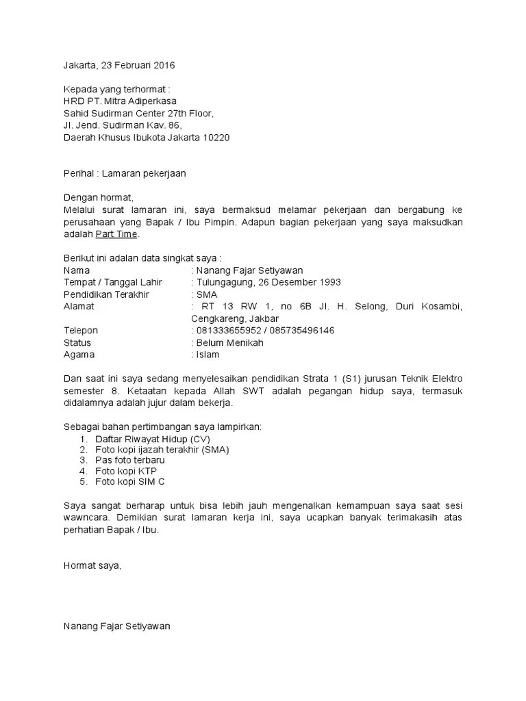 Crew counter (pelayan toko) penempatan: Bersedia bekerja secara shift dan di hari libur atau akhir pekan; 14 contoh surat lamaran kerja terbaru 2018. Kalimatnya mudah dipahami dan sesuai dengan format penulisan serta tersusun rapi. Surat lamaran kerjajuli 08, 2021 18:54.